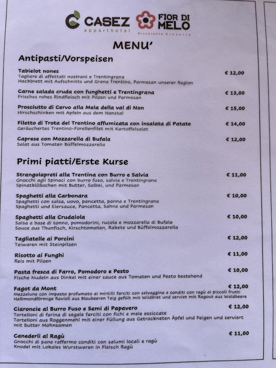 Welcome to Ristorante Fior di Melo, a culinary gem nestled in Casez, Italy. This restaurant harmoniously blends quality dining with a charming atmosphere, perfect for those seeking memorable meals. Just minutes from the serene Eremo di San Romedio, the patio dining offers a picturesque setting for guests.
